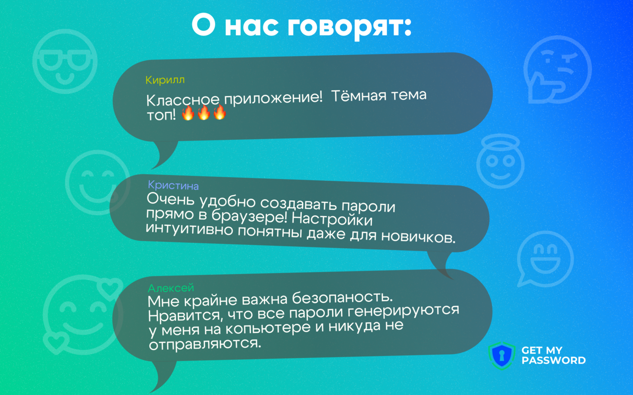 🔒 Без хранения данных. Без отслеживания. Полная конфиденциальность. Все пароли создаются локально на вашем устройстве – безопасность прежде всего!